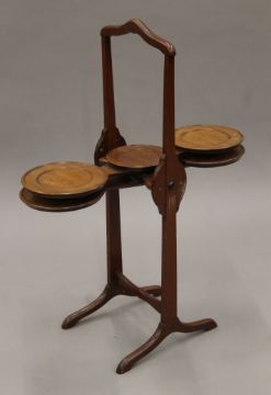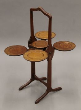 A vintage mahogany monoplane folding cake stand. 78.5 cm high.