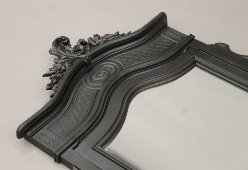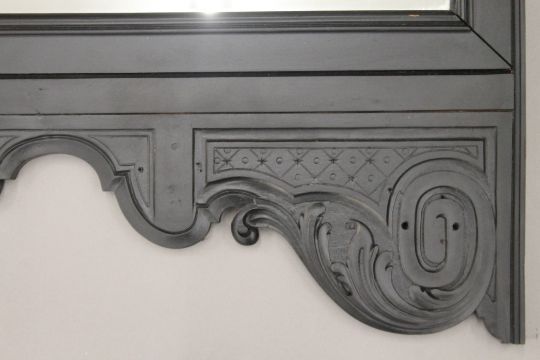 A Victorian ebonised overmantle mirror. 102 cm wide x 104 cm high.