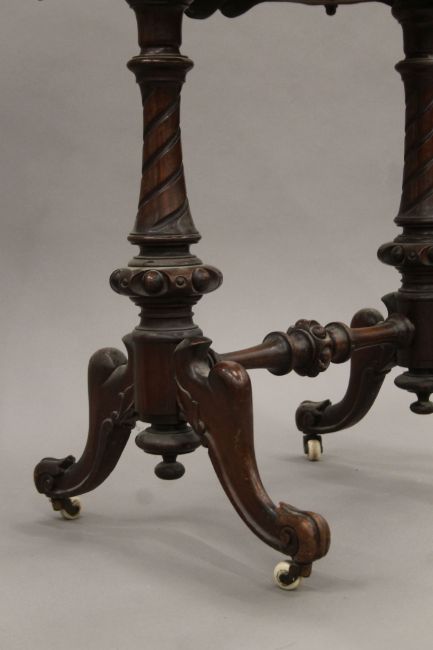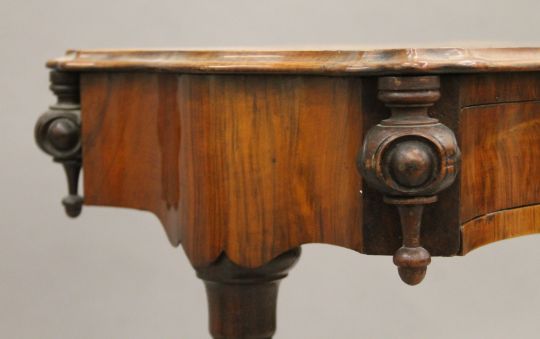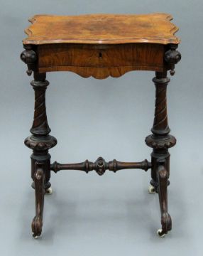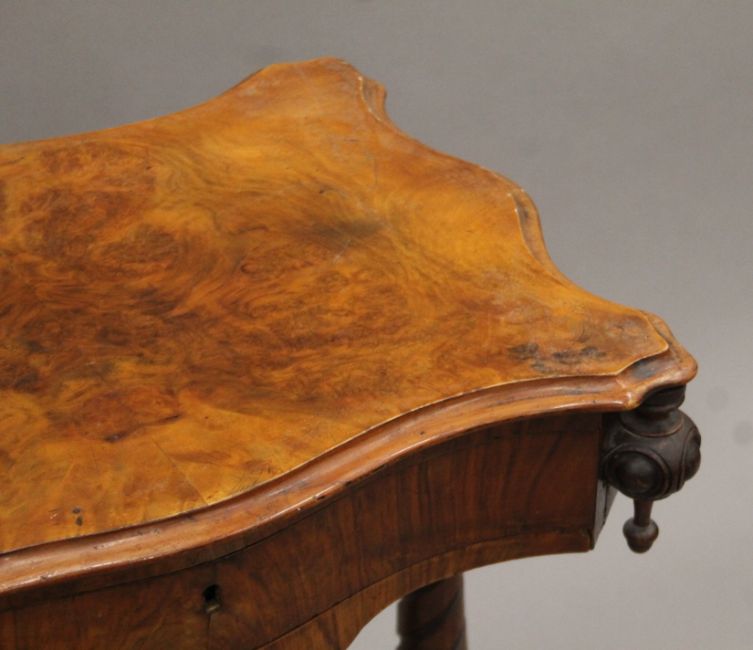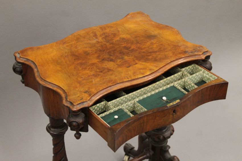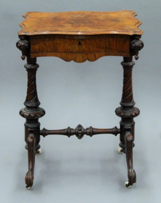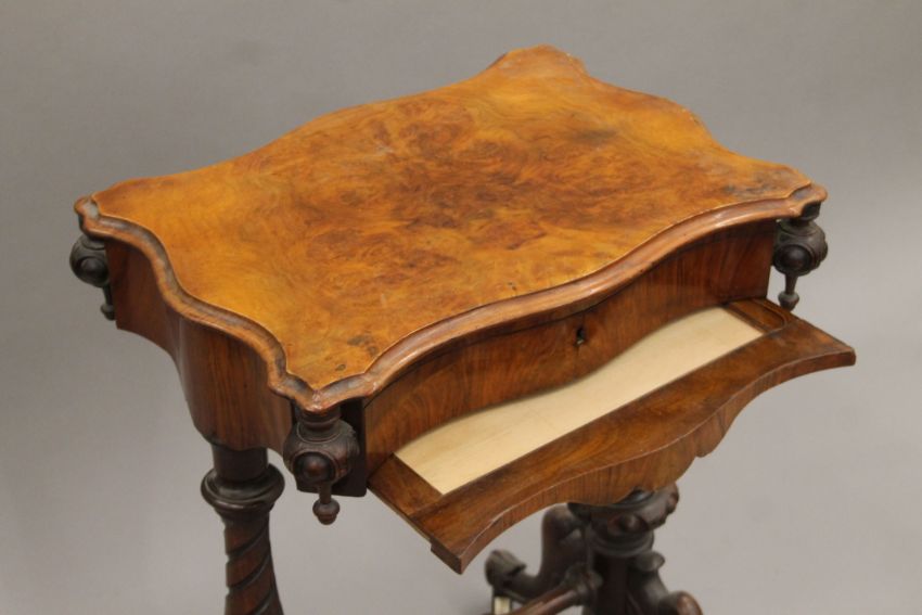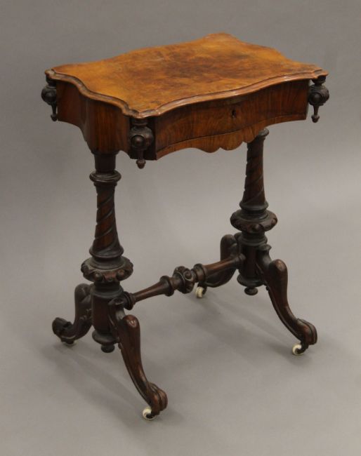 A Victorian walnut work table. 54.5 cm wide.