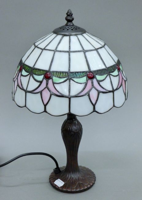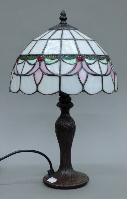 A Tiffany-style lamp. 43 cm high.