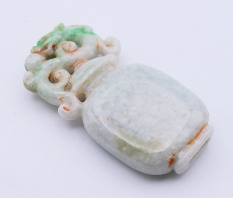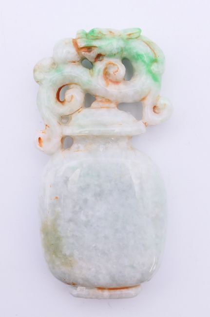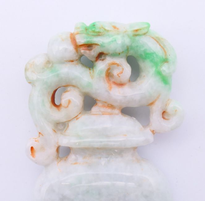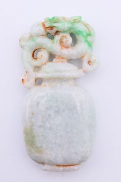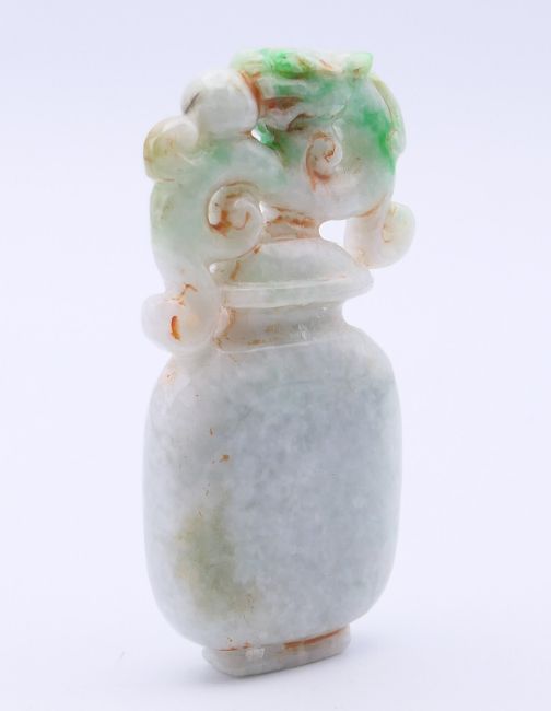 A jade dog-of-fo on an urn. 7.5 cm high.