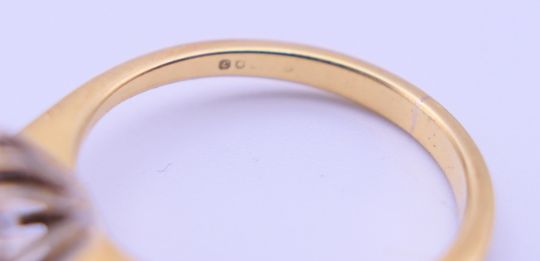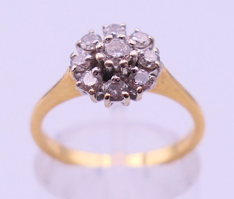 A gold and diamond daisy ring. Ring size M. 3.3 grammes total weight.