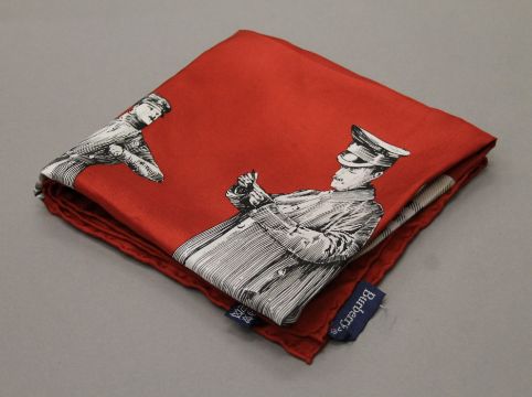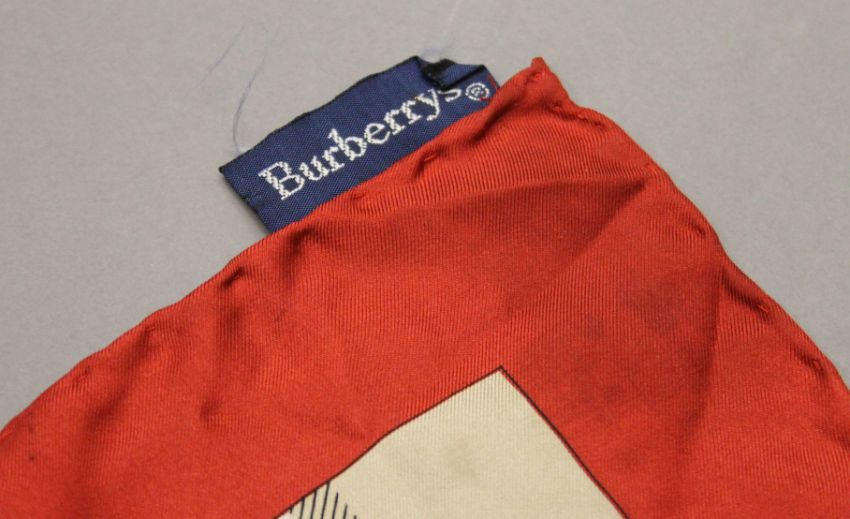 A Burberrys vintage 'Three Splendid Guardians' printed silk square. Approximately 76 cm square.