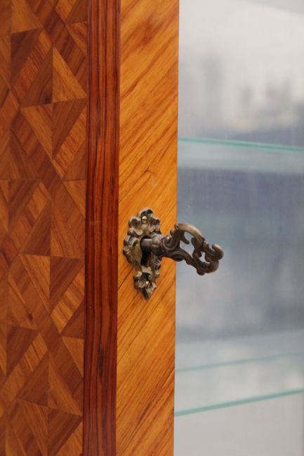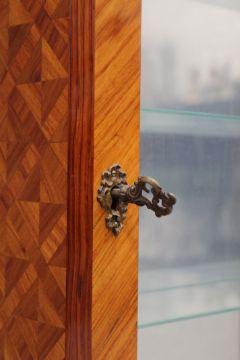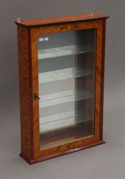 A glazed wall-hanging display cabinet. 56 cm wide x 84 cm high.
