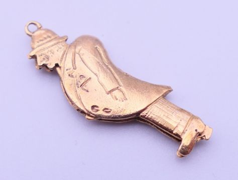 A 9ct gold charm/pendant formed as a flashing man. 3 cm high. 2.4 grammes total weight.