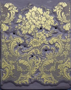 A vintage wallpaper printing block, the reverse stamped for J T Larking, Hackney. 72 x 56 cm.