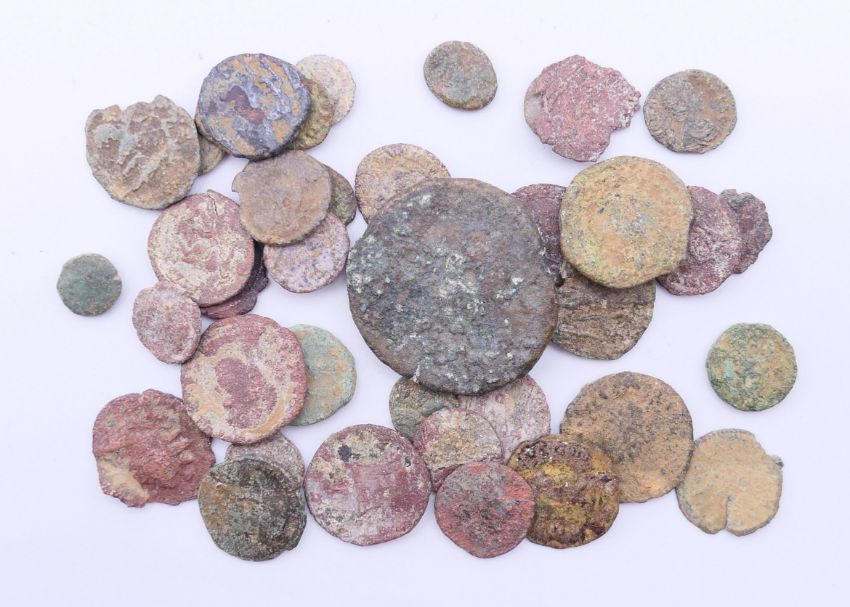 Forty various antiquity Roman coins.