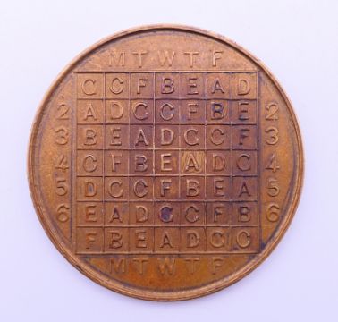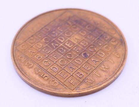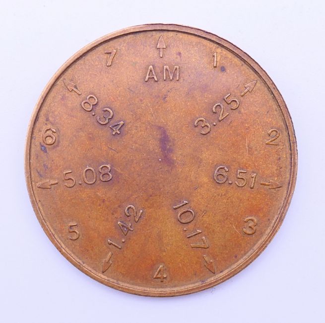 A vintage cycle of life indicator coin. 4 cm diameter.
