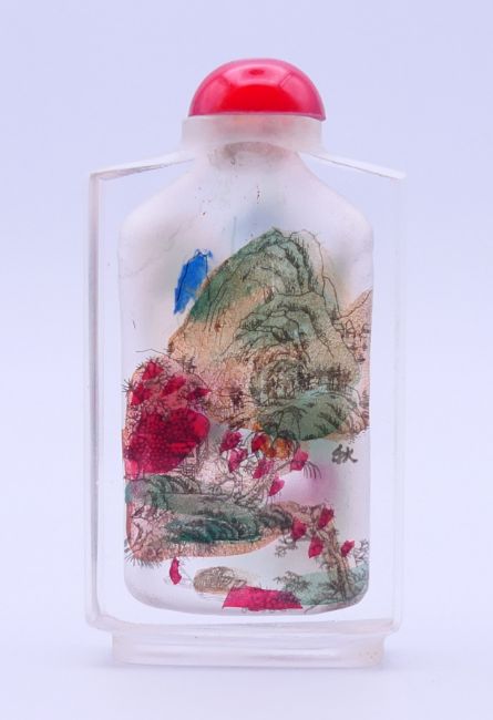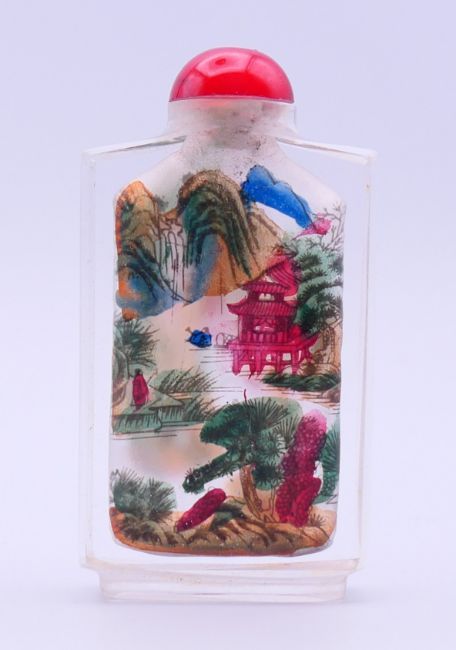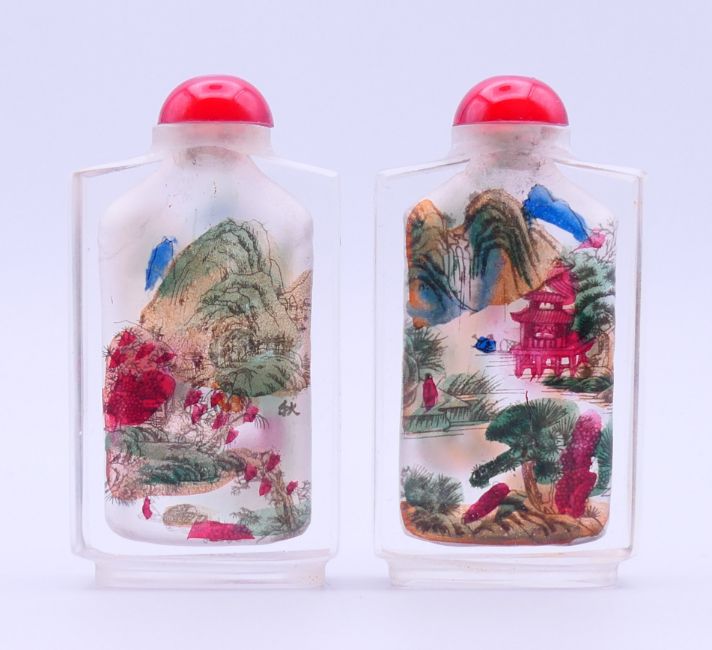 A pair of Chinese glass snuff bottles. Each 7.5 cm high.