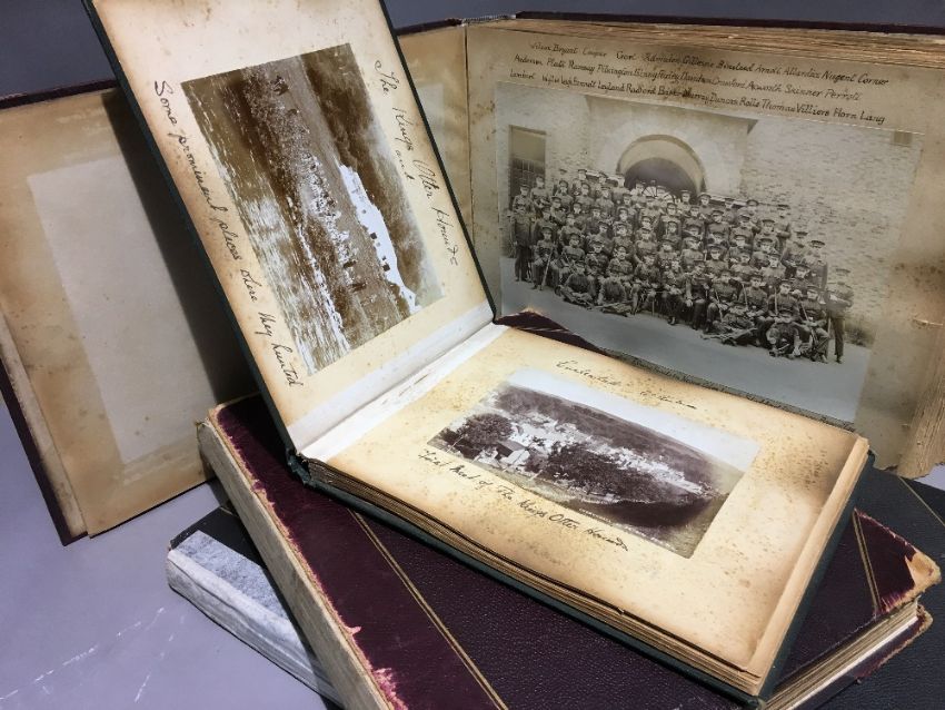 Four photograph albums covering the career of Captain St. John Warren Hastings from the 1890s up to 1914 and including photographs by William Mervyn Lawrence Captain St. John Warren Hastings was born Stoke Damerel, Devon in 1872 and served in the military with the King's Liverpool Regiment, 1892 2nd Lieutenant, 1896 Lieutenant, 1899 Captain and Adjutant. In 1903 he was seconded for service on the staff of the Royal Military College, Sandhurst as officer of a company of gentlemen cadets. He retired from the King's Liverpool Regiment in 1908. Re-joining his unit and various other battalion/regiments, he served during World War I 1915-1918 and on leaving the training reserve in 1918 was granted the honourable rank of Lieutenant Colonel. He died in Tenby in 1940. Most of the present photographs are identified with soldiers names and places, handwritten by Captain Hastings. While posted in Ireland he was Master of the King's Regiment of Otterhounds and there are good topographical photographs of this. There are also photographs of him out and about with the hounds of Great Britain and, being a keen Freemason, there are two large photo groups of two Lodges. His father Francis Hastings was a Crimean veteran and later vicar of Preston.