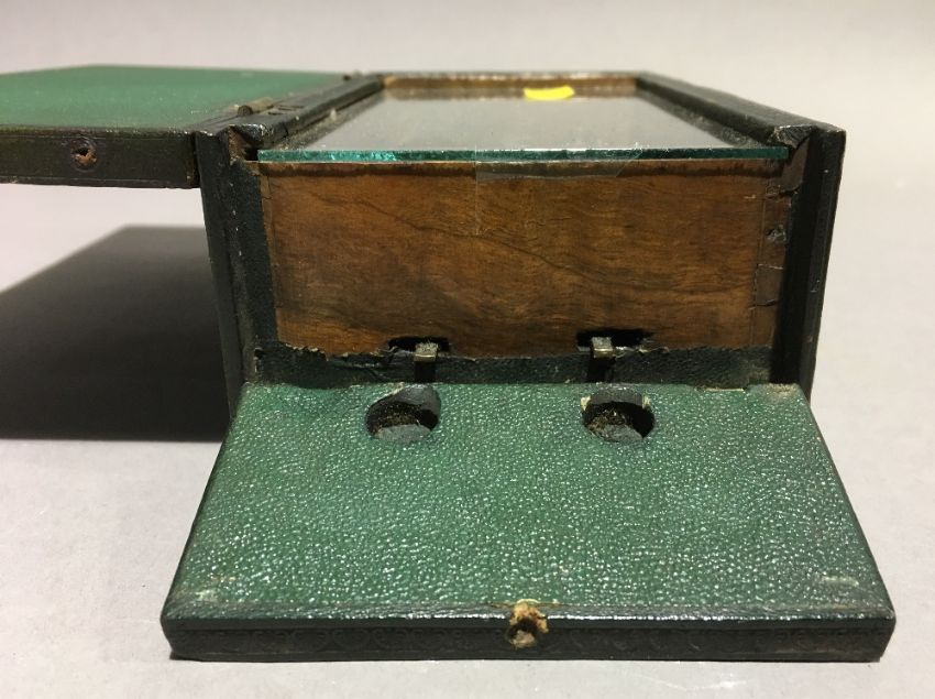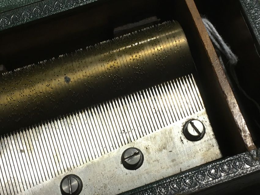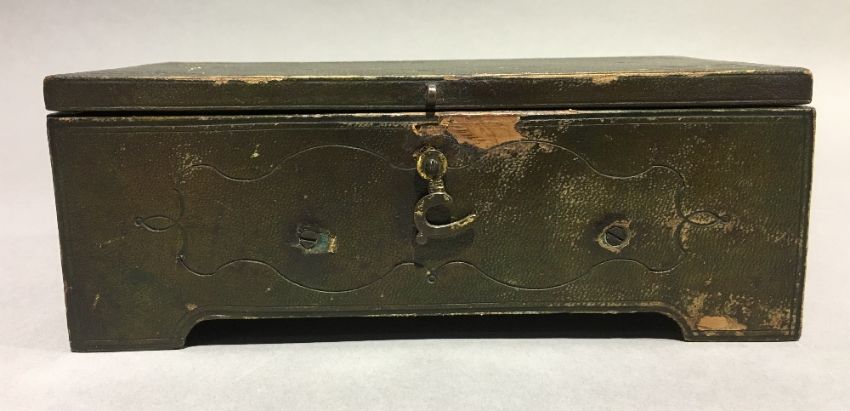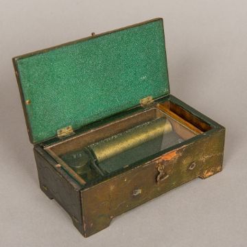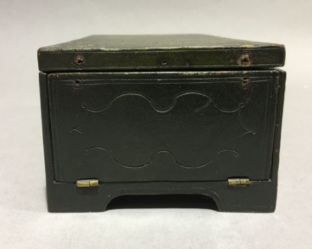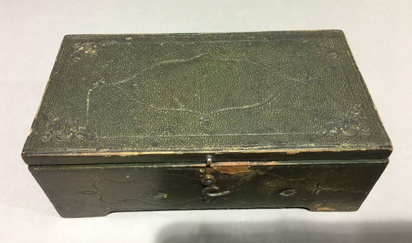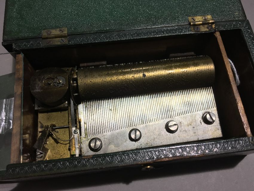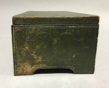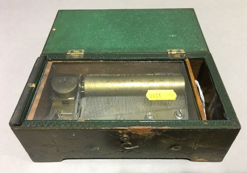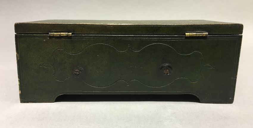 An unusual 19th century leather clad music boxOf tooled hinged rectangular form. 17 cm wide. CONDITION REPORTS: Some leather wear/loss, some fading, in working condition, general wear.