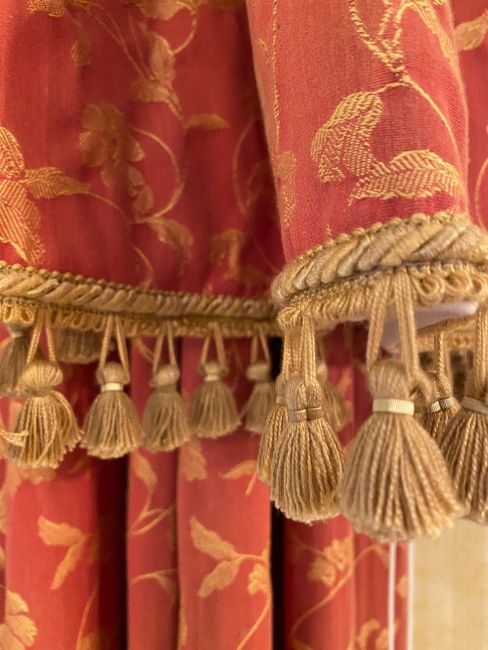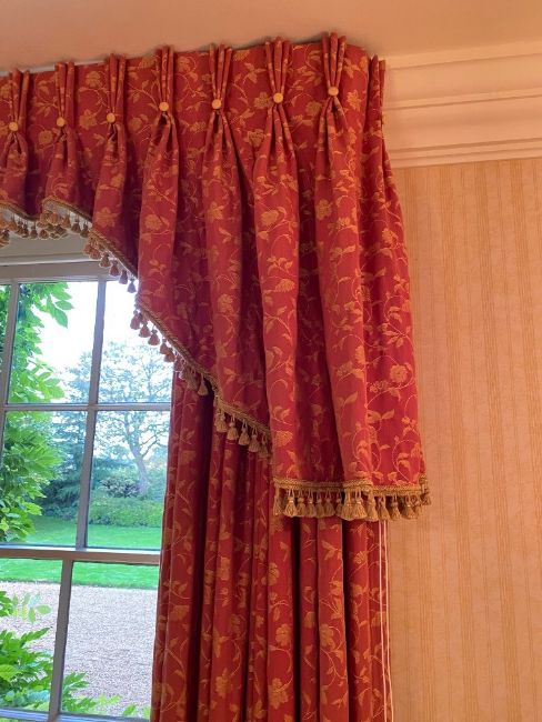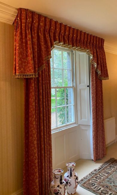 A pair of curtains, possibly Sanderson. 201 cm wide x 255 cm high.