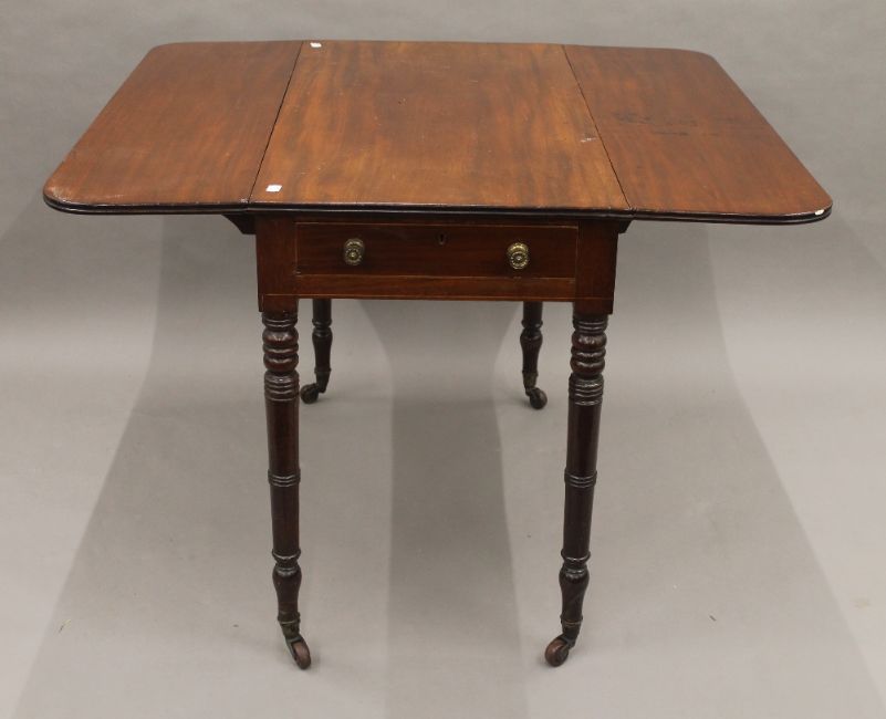 A Victorian mahogany Pembroke table. 50 cm wide flaps down.