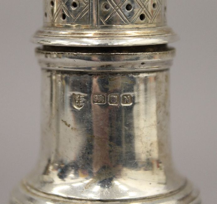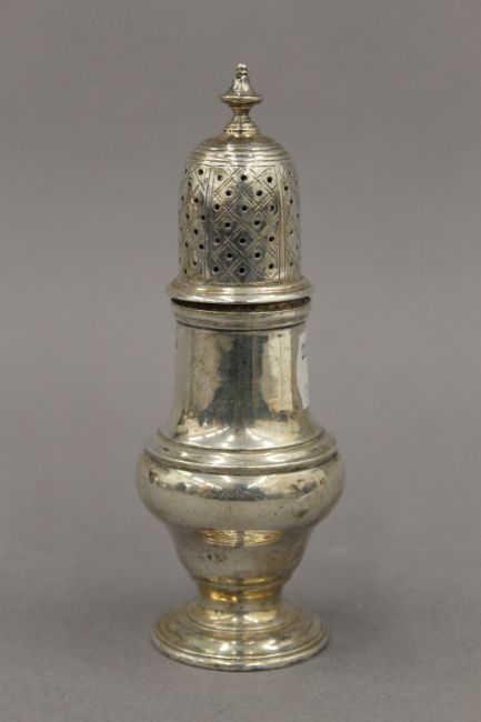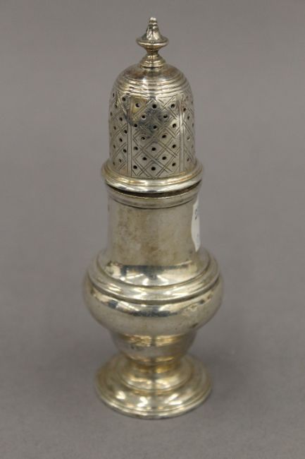 A silver pepper. 12.5 cm high. 3 troy ounces.