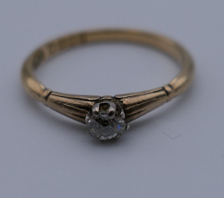 An 18 ct gold diamond solitaire ring. Ring size O. 2.4 grammes total weight.