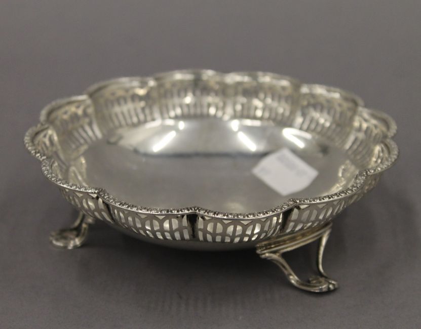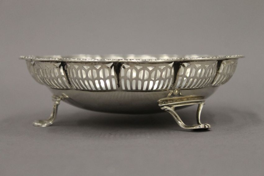 A silver pierced dish. 13 cm diameter. 3.1 troy ounces.