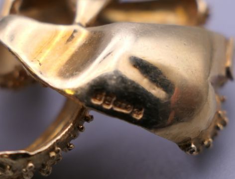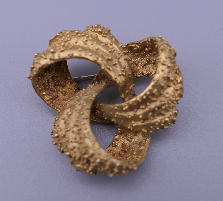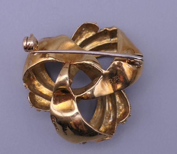 An 18 ct gold bow brooch. 2.5 cm wide. 8.8 grammes.