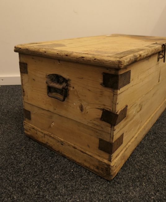 A Victorian pine trunk. 90 cm wide.