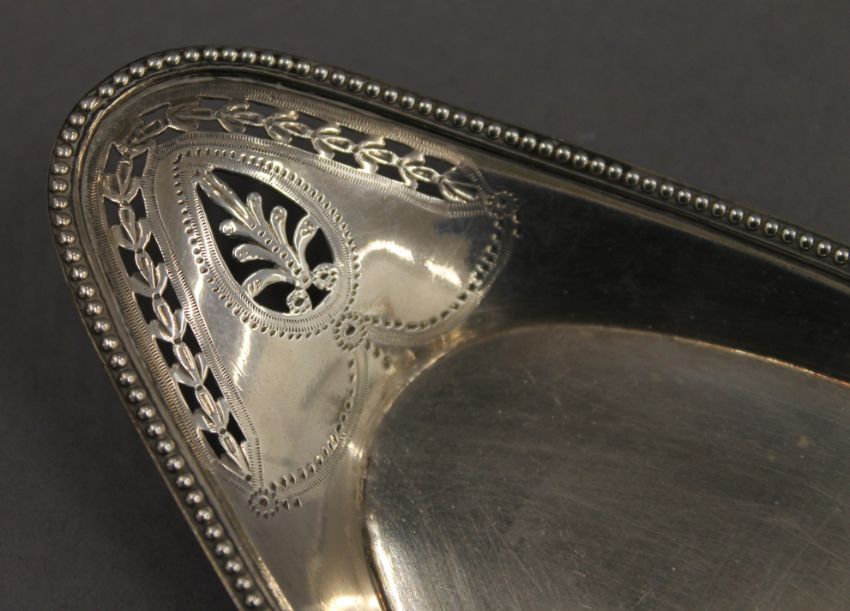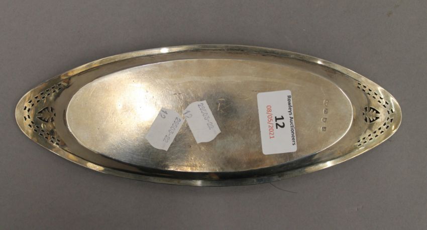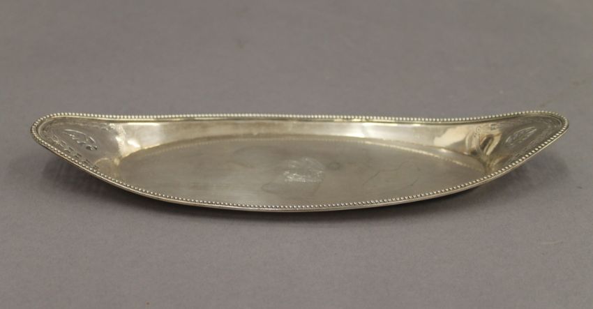 A small Georgian silver navette shaped tray. 25 cm wide. 4.2 troy ounces.