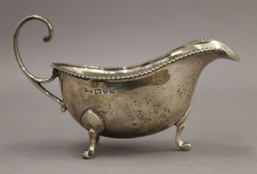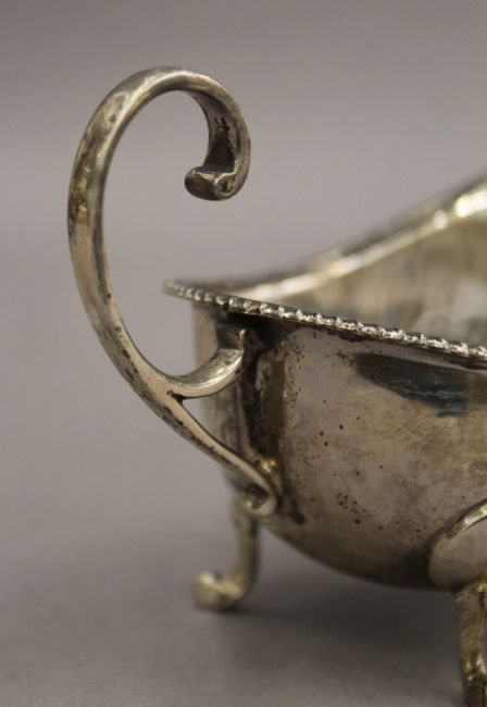 A silver sauce boat. 14.5 cm wide. 3 troy ounces.