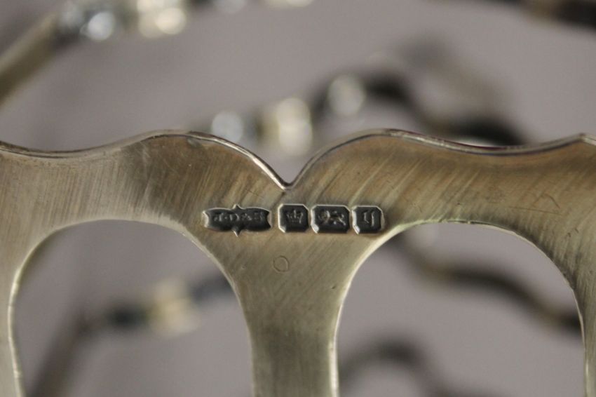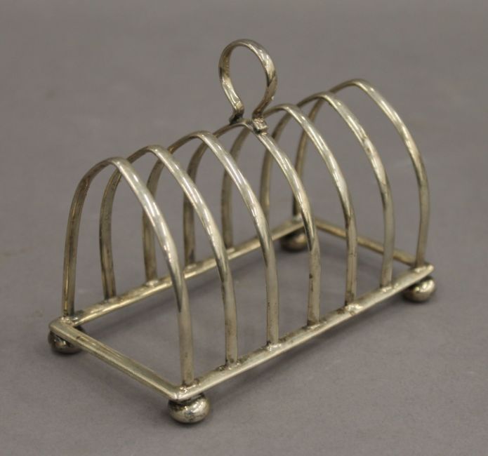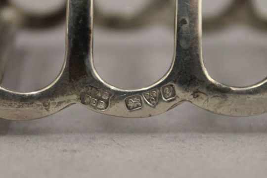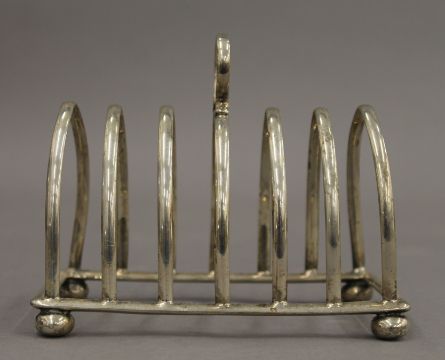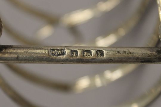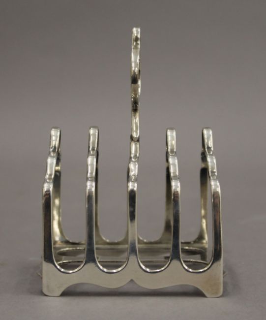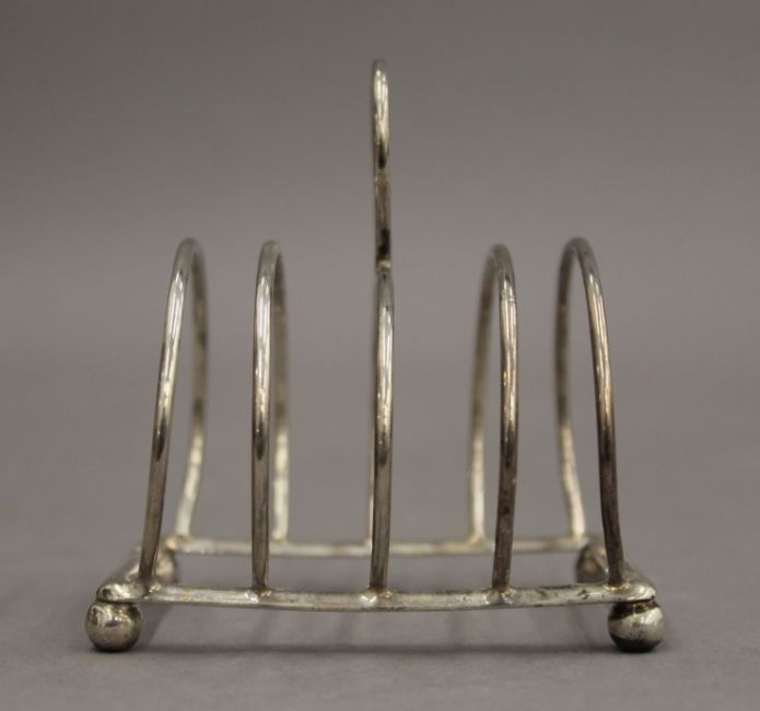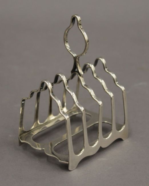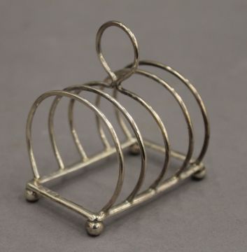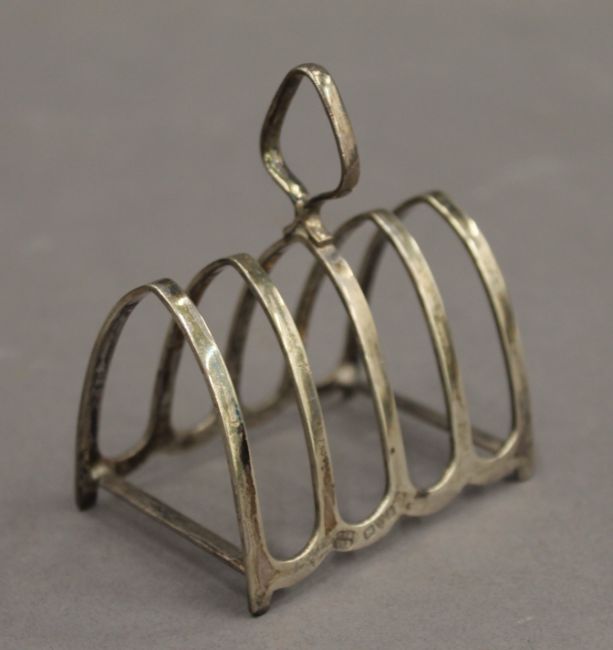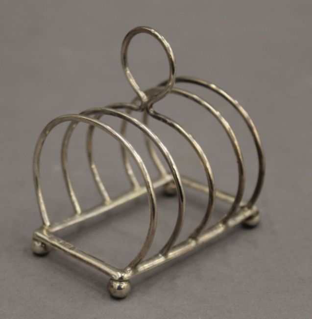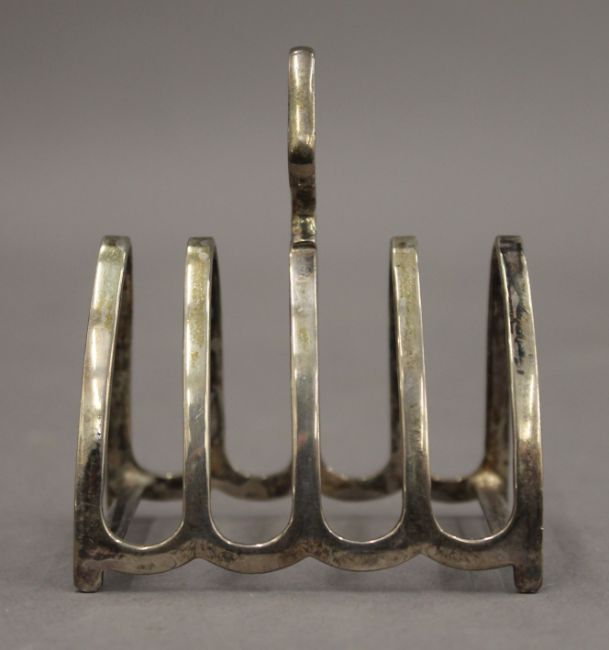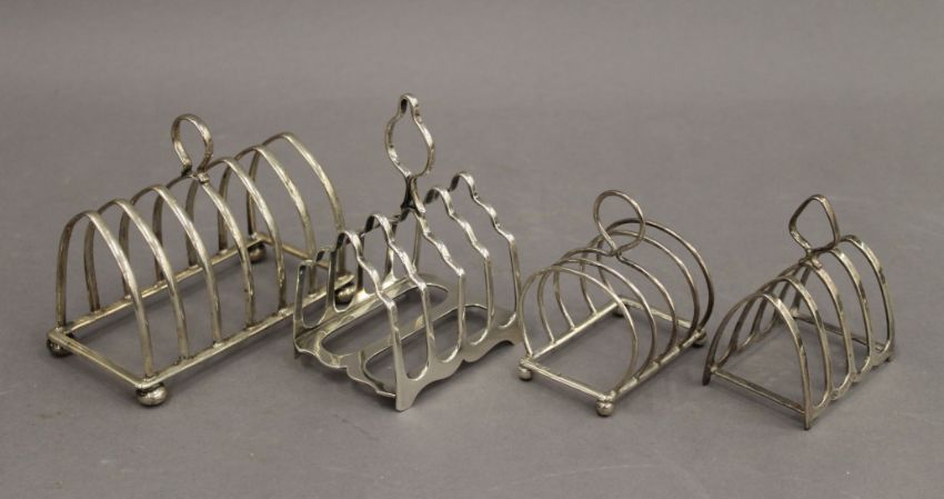 Four silver toast racks. The largest 12.5 cm wide. 11.6 troy ounces.