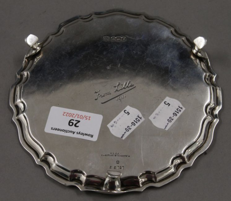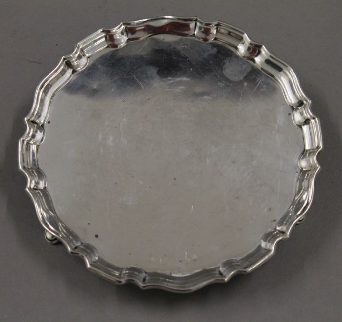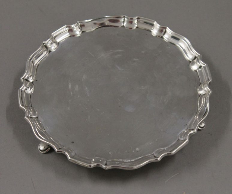 A small silver waiter, hallmarked Sheffield 1910. 193.7 grammes.