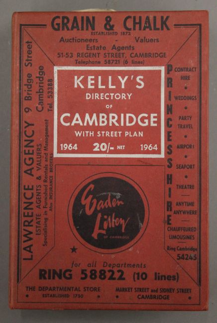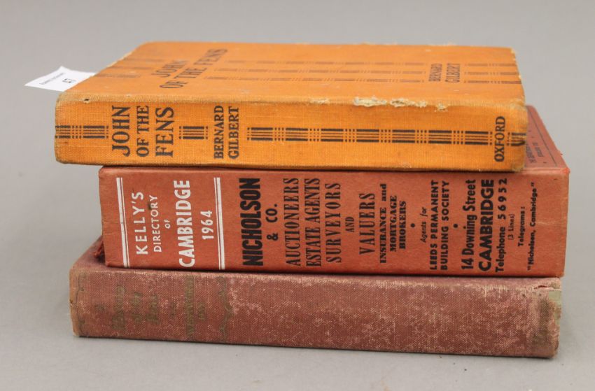 Three books of local interest: John of the Fens by Bernard Gilbert, Kelly's Directory of Cambridge with Street Plan 1964, and The History of the Fens by J Wentworth-Day.