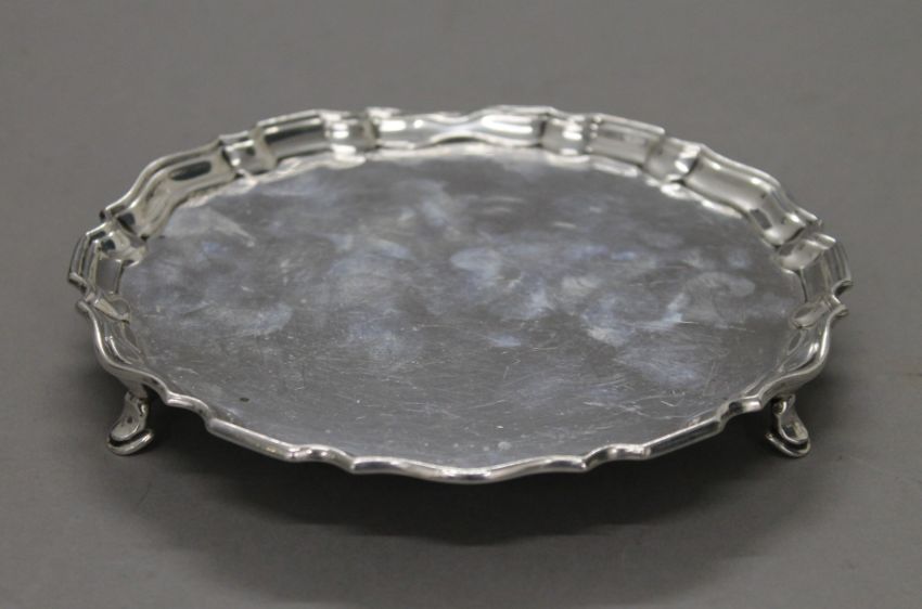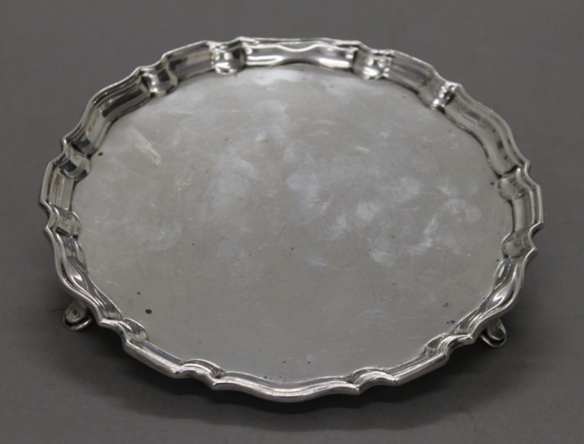 A small silver salver. 15 cm diameter. 193.7 grammes.