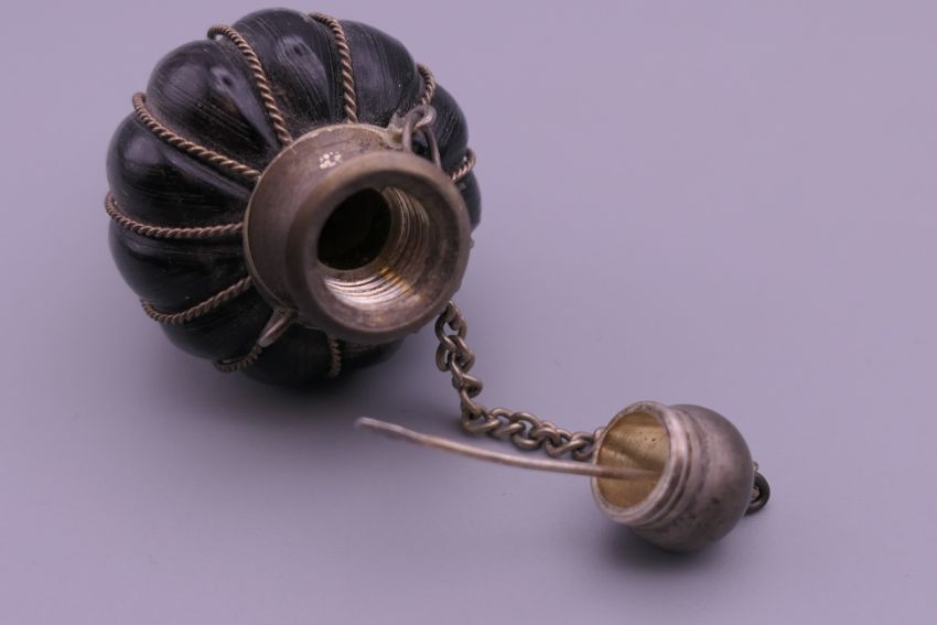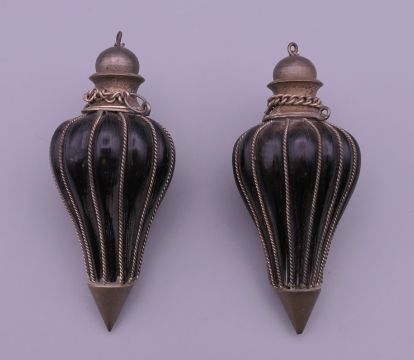 Two horn snuff bottles. Each 7 cm high.