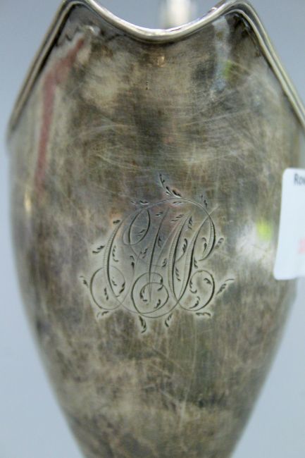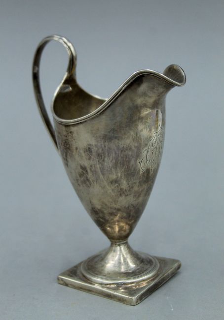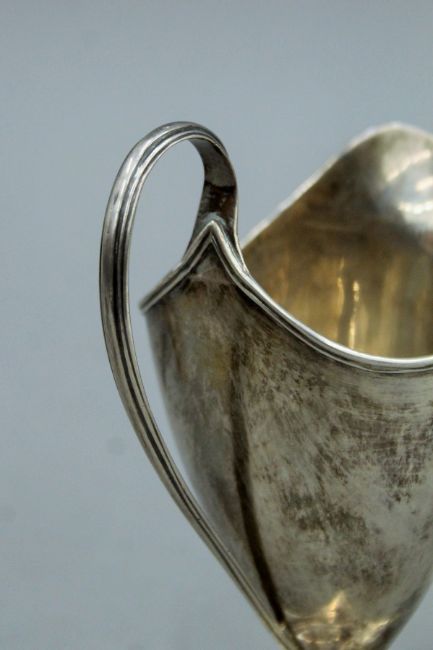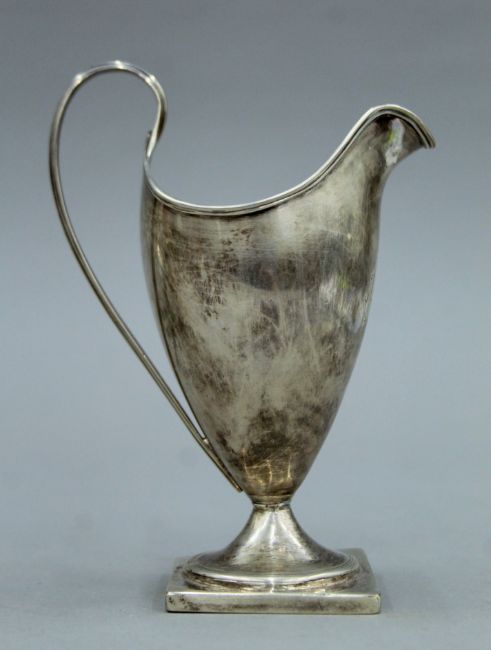 A George III silver pedestal helmet cream jug, makers mark IB, hallmarked London 1791. 13.5 cm high. 120 grammes.
