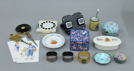 A box of miscellaneous items, including cloisonne boxes, etc.