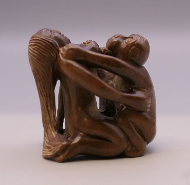 An erotic netsuke. 4.25 cm high.