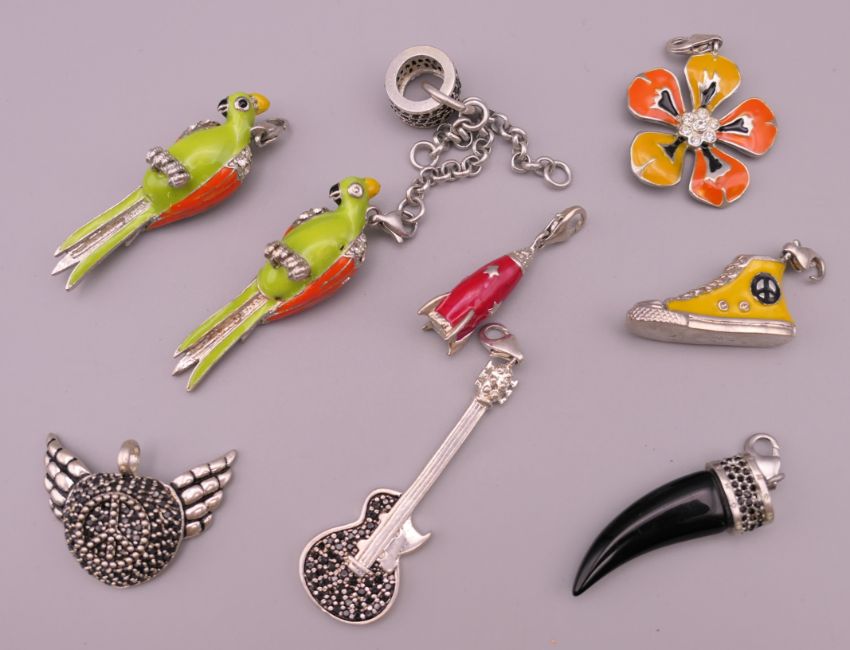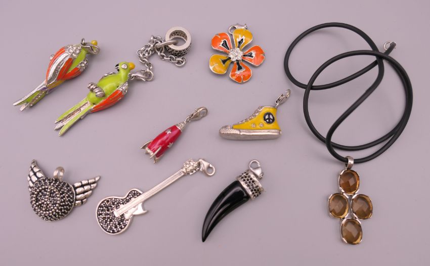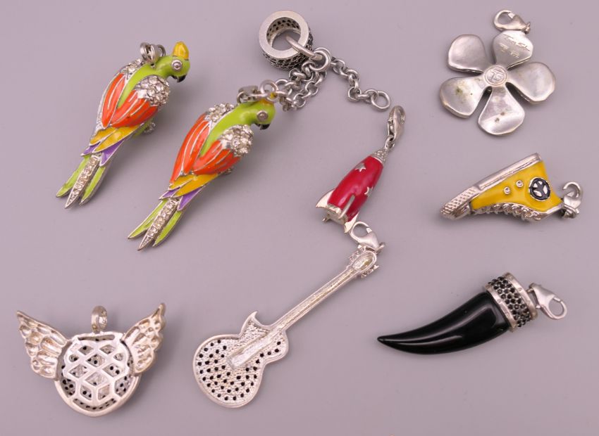 Nine silver Thomas Sabo pendants. Parrot 5 cm high.