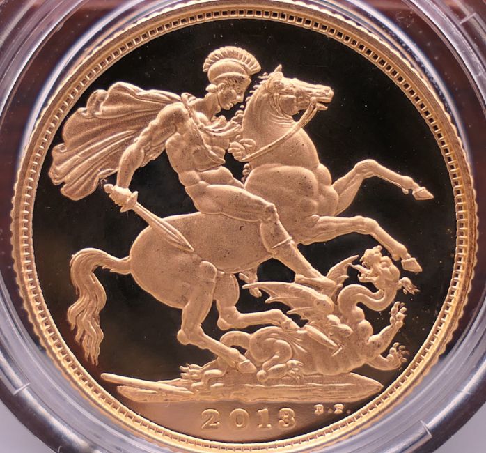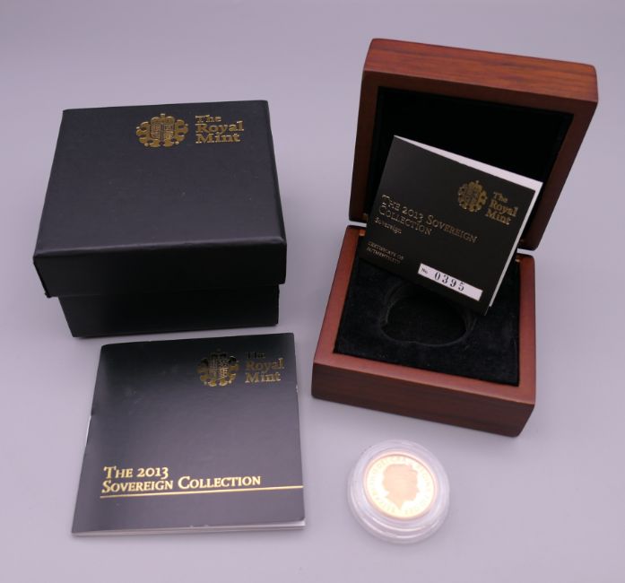 A 2013 proof sovereign, with certificate and box.