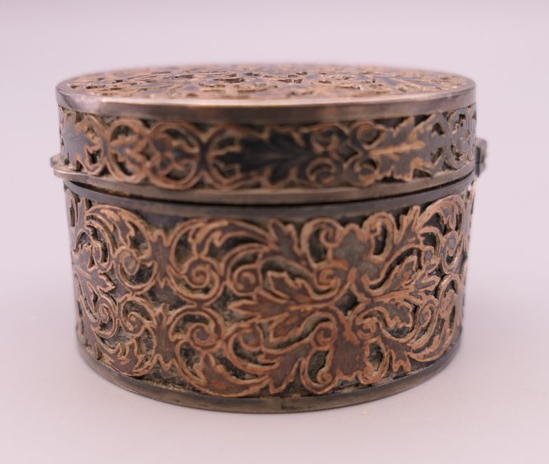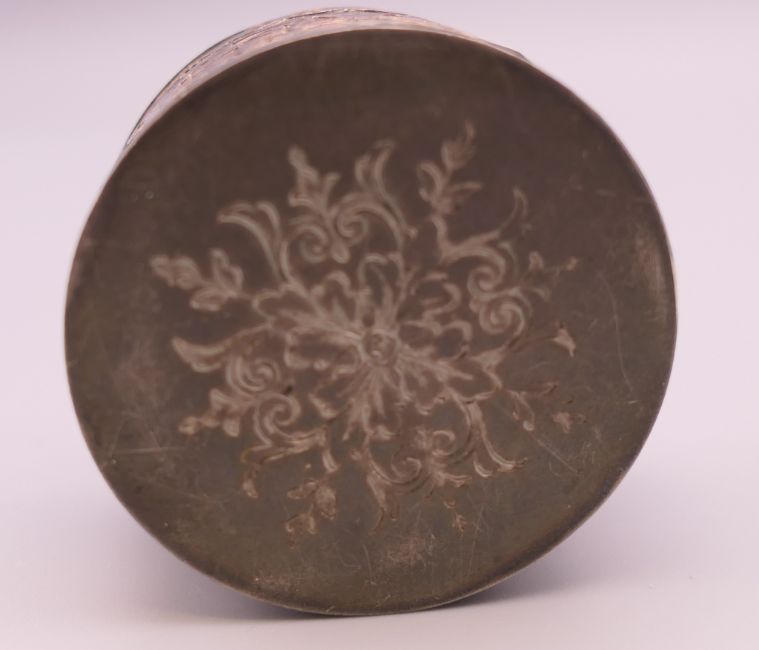 A Continental silver round pill box. 4.25 cm diameter.
