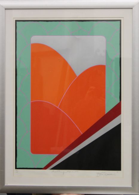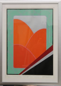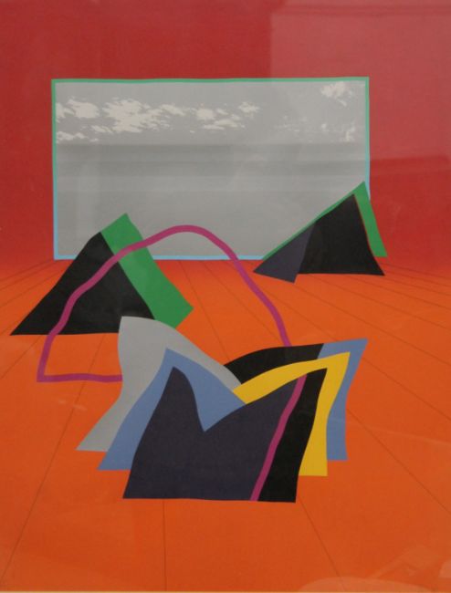 ANTHONY BENJAMIN (1931-2002) British, Double Red Landscape, Artist's Proof, framed and glazed; together with another framed and glazed abstract print. The former 56.5 x 74 cm.
