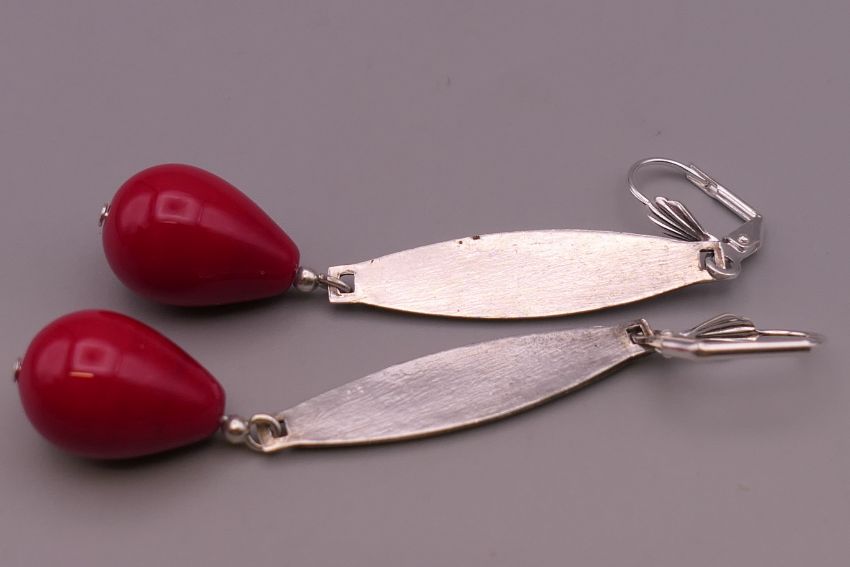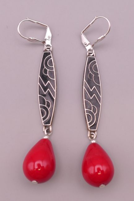 A pair of Art Deco style black enamel earrings. 6 cm high.