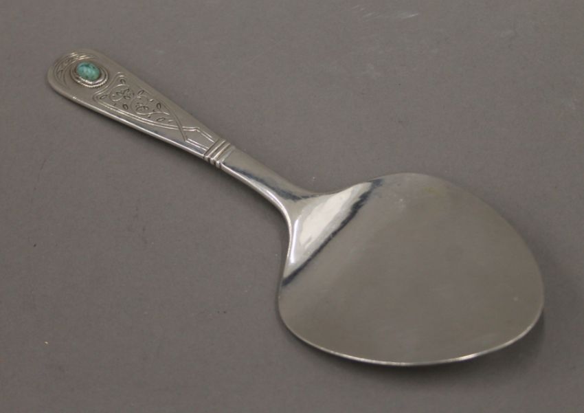 A Liberty and Co silver cake slice. 18.5 cm long. 94.7 grammes total weight.