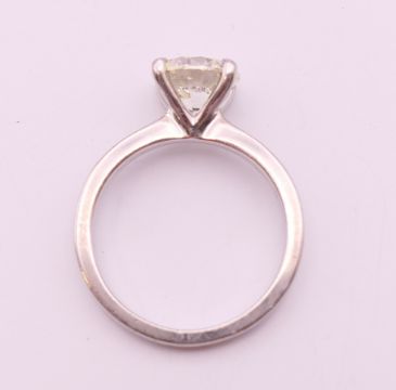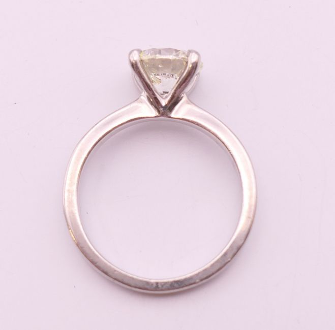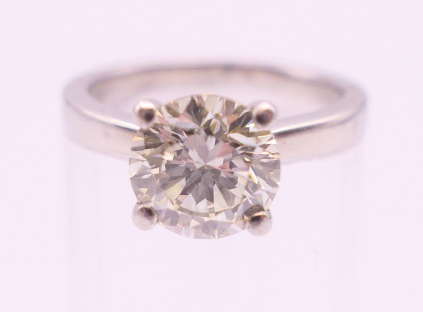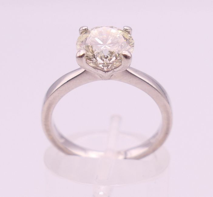 A platinum diamond solitaire ring, the stone approximately 1.9 carats. Ring size L.