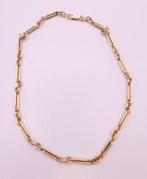 A 9 ct gold watch chain, converted to a necklace. 40.5 cm long. 29.9 grammes.