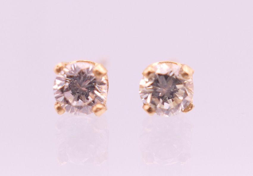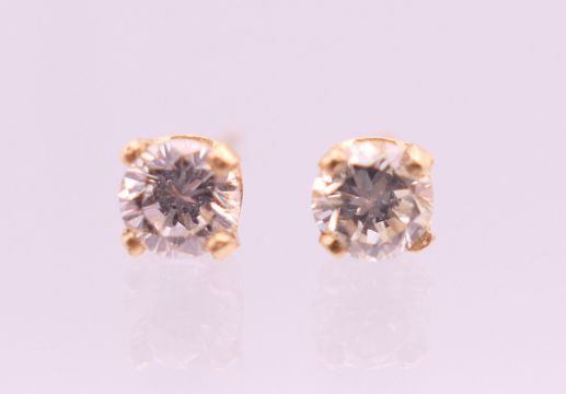 A pair of 18 ct gold diamond stud earrings. Total diamond weight approximately .36 carat.