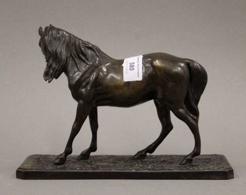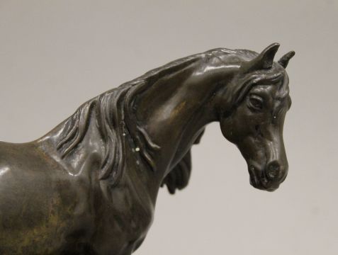 After MENE, a patinated bronze model of a horse. 24 cm long.
