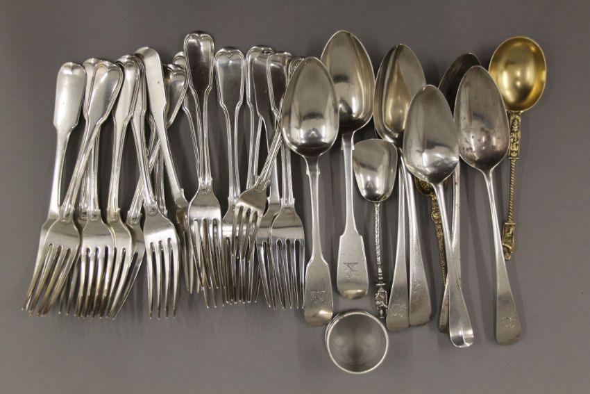 A large quantity of silver flatware. 1777.8 grammes.