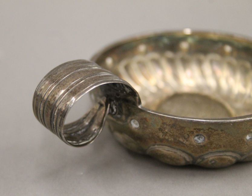 A French silver wine taster. 7.5 cm diameter. 56.3 grammes.