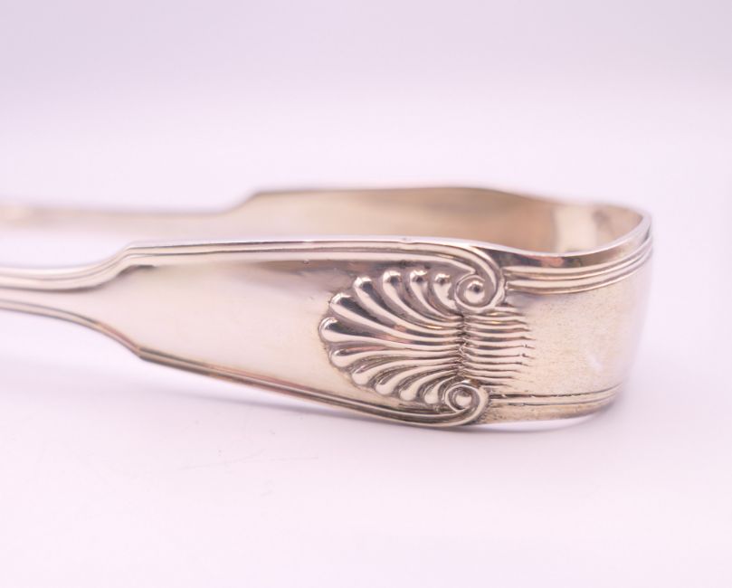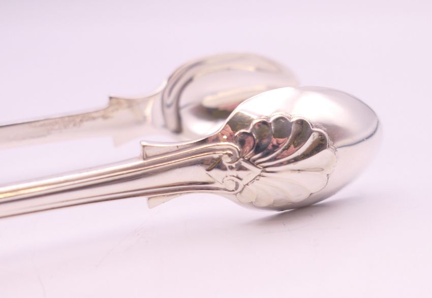 A pair of Kings pattern silver tongs. 14 cm long. 66.4 grammes.