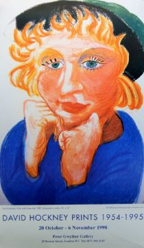 DAVID HOCKNEY (born 1937) British (AR), Celia with Green Hat, a limited edition lithographic print poster for the 1998 David Hockney Prints Exhibition held at The Peter Gwyther Gallery (limited run of 1,000). 42 X 71 cm.