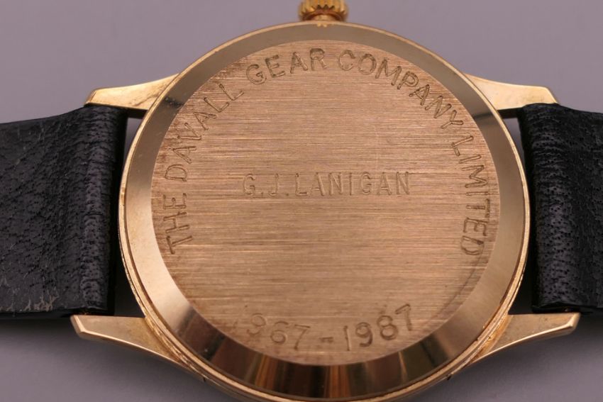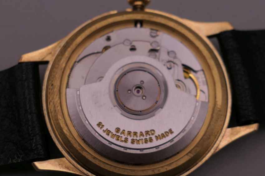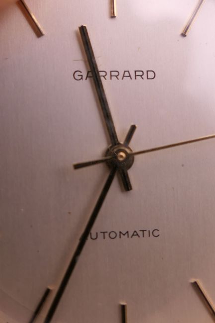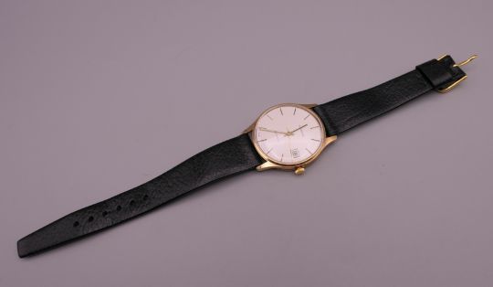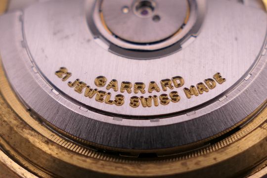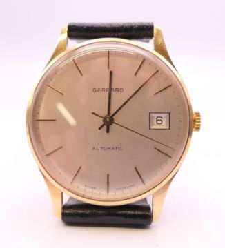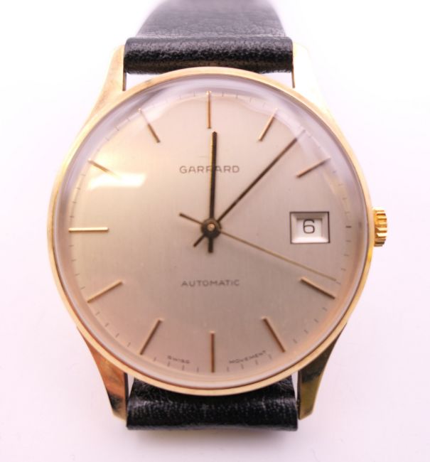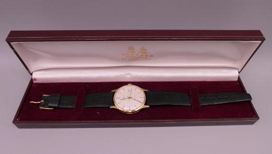 A Garrard 9 ct gold gentleman's wristwatch. 3.5 cm wide.