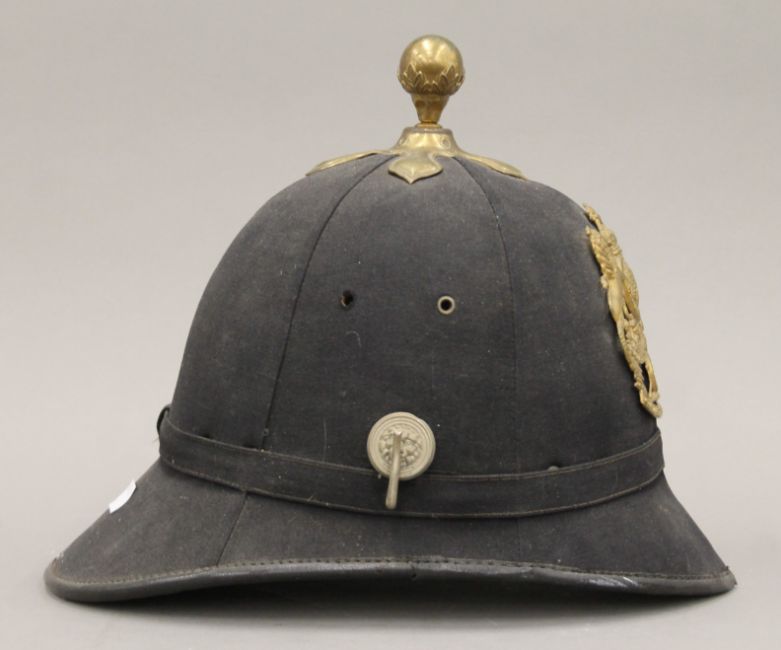 A 19th century military helmet.
