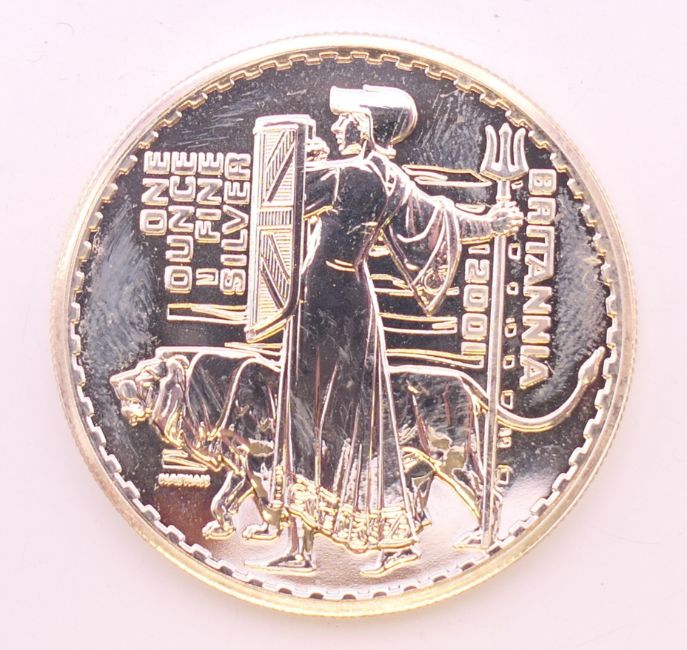 A 2001 1oz fine silver Britannia coin.