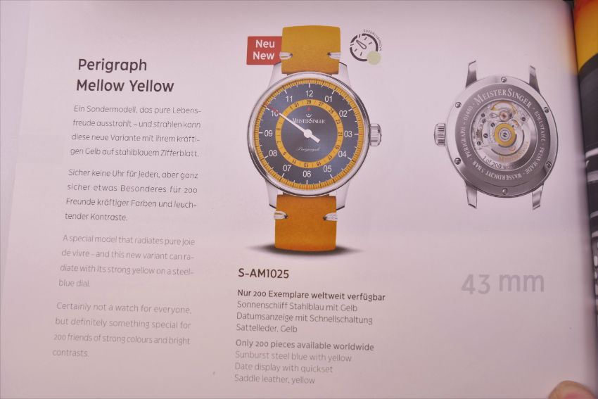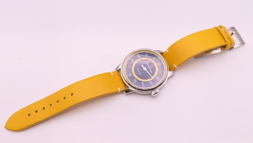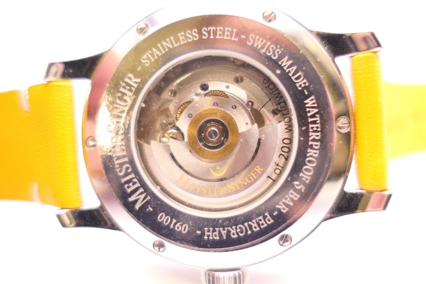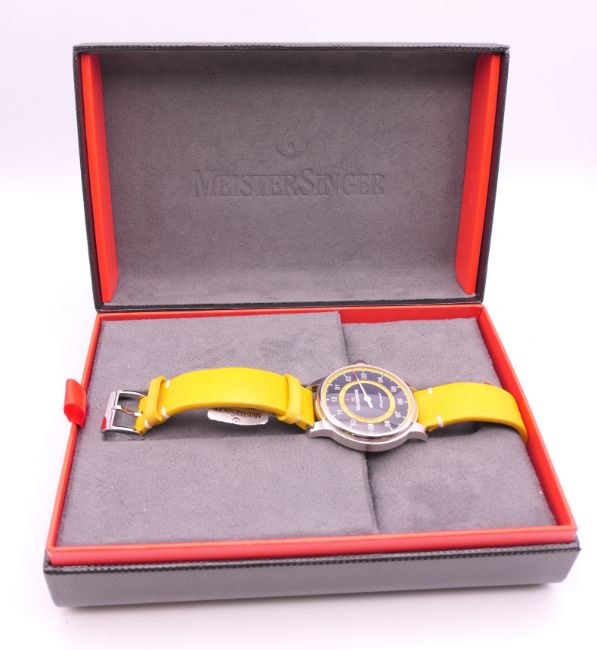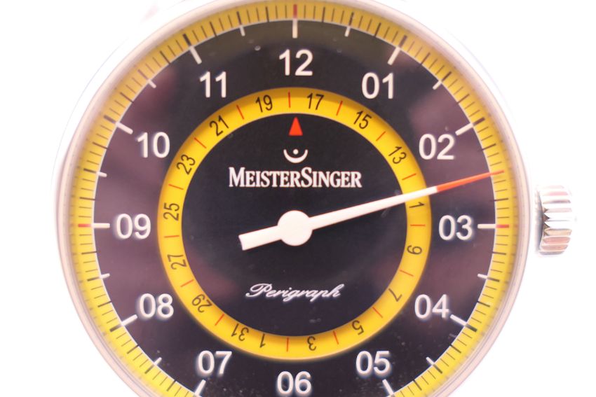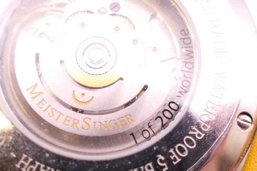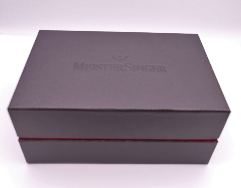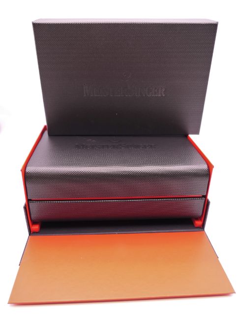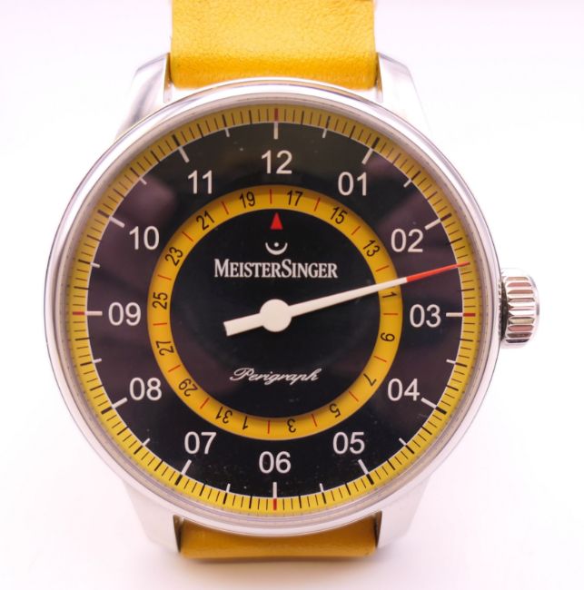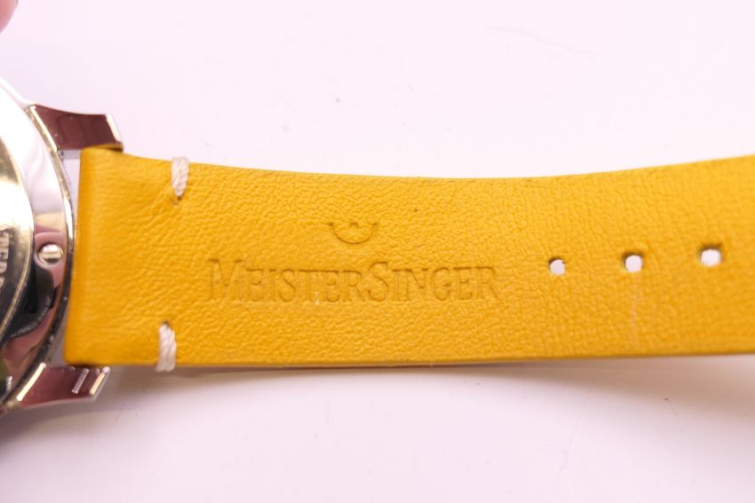 A boxed limited edition Meistersinger Perigraph gentleman's wristwatch. 4.5 cm wide.